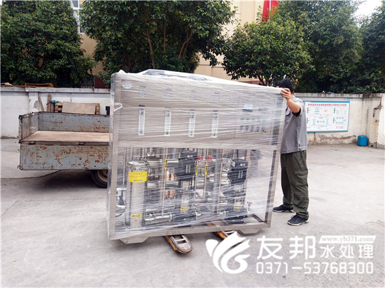 即將裝車發(fā)貨的是一套0.5噸雙級純凈水設備發(fā)往西安,歷經5個工作日,友邦工作人員全力以赴為客戶服務,保證客戶利益最大化。 接下來我們一起了解下小型反滲透設備的特點:
